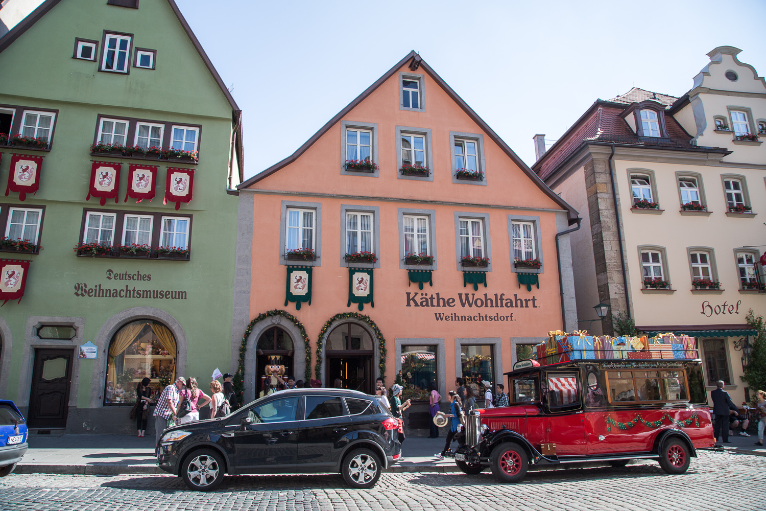 Rothenburg ob der Tauber[20 on the map]Such a great little town to visit with surprisingly many things to see and do. There is an old defence wall surrounding the town that we walked along the top to get a great overall sense of where we were. Climbing the staircase of the Rothenburg Town Hall (Rathaus) in the middle of the town brings you to a great 360° view. There seemed to be many events when we were there with traditional parades and performances in the streets. The nightwatchman tour was funny and very well presented - highly recommended. |
